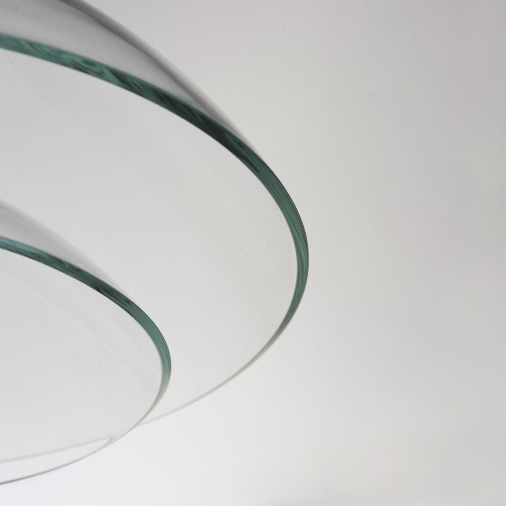 Studio M ARYA SM24701CLBC Pendant Traditional - Black Chrome. Double Stacked Hand Blown Glass Domes Plateau To A Flattened Plane Resting Marvelously On A Cylindrical Tube Striped With Dedicated Led Light Reveals Glass Options Of Mirror Smoked Or An Opulent Emerald Green Pair With A Second Clear Glass Shade They Appear To Float As They Suspend On The Cylinders Finished In Fine French Gold Or Polished Black Nickel At The End Of The Cylinder An Additional Downlight Provides Functional Lighting Below Studio M MPN: SM24701CLBC
